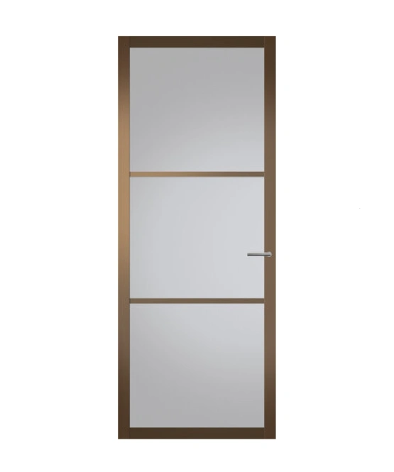 Glasdeur TX901MB in metalic brons is uitgevoerd met een slanke profilering. Hierdoor heeft dit model een eigentijdse, industriële en stijlvolle uitstraling. Combineer deze glasdeur met lijndeur TX951 voor een mooie eenheid in uw interieur.