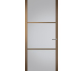 Deze afgelakte binnendeur is leverbaar met blank glas, satijn glas, rookglas of brons glas.
