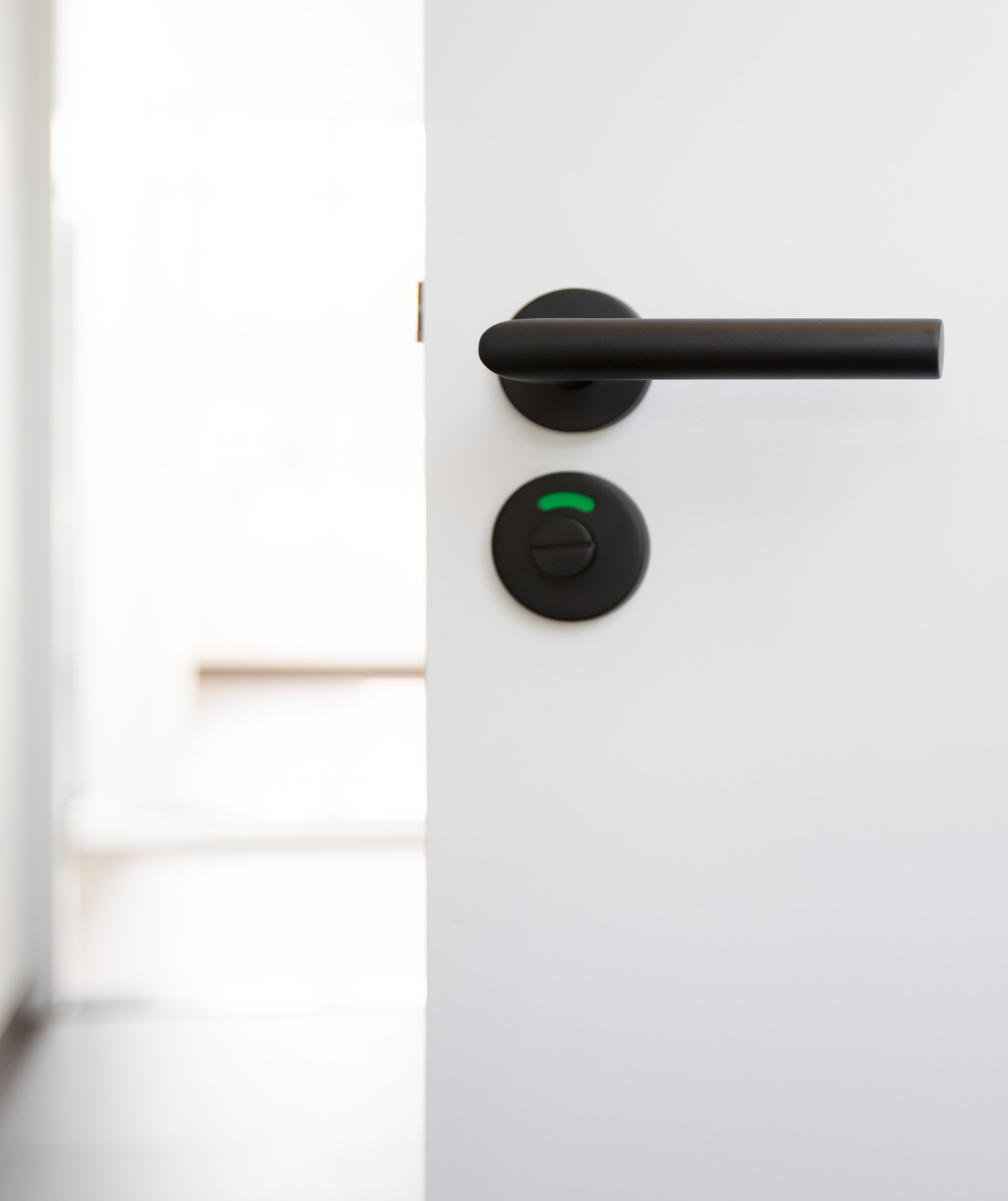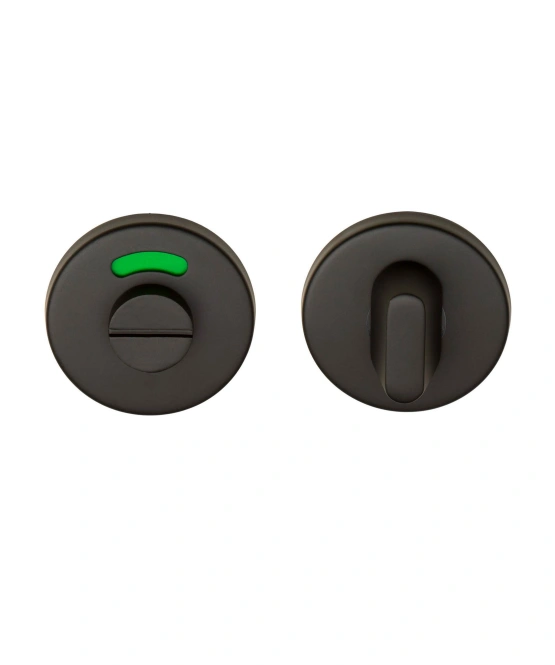 Bijpassend topiletgarnituur bij deurkruk TD601 in de kleur zwart. Aan de binnenzijde heeft deze een grote draaiknop voor een goede grip en aan de buitenzijde een rood/groen indicator.